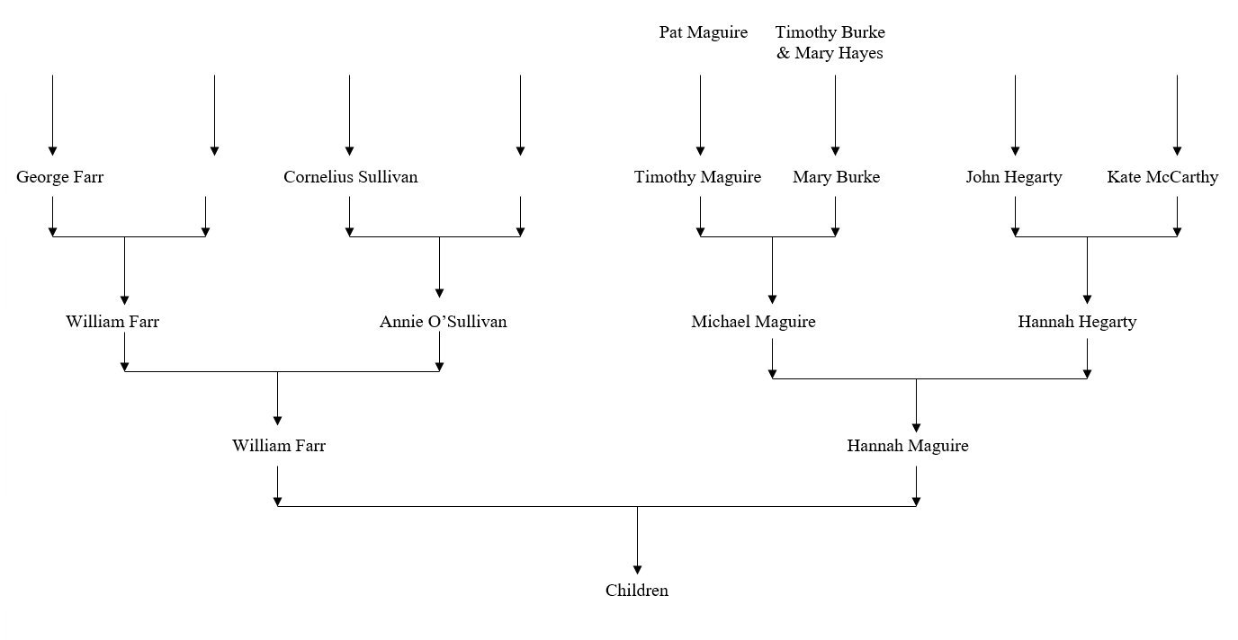 William Farr, a motor driver, and Hannah Maguire, a domestic, married on 4 November 1934 in the Catholic Church of St Finbarr West in Cork city. The marriage witnesses were William Kingston and Kathleen McCarthy.